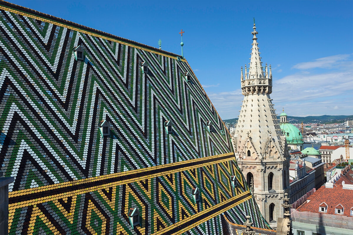 また、今もなお残る教会の屋根の模様はとても個性的です。