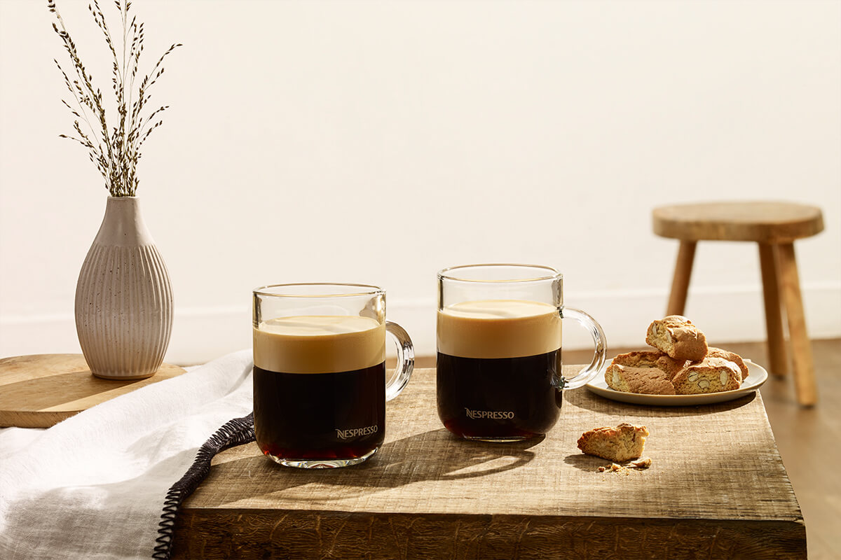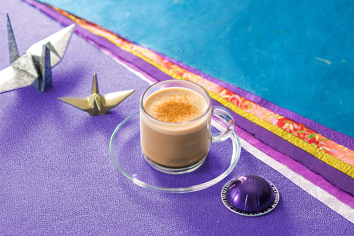 - 3. 2をヴァーチュオ ダブルエスプレッソカップに注ぎ、お好みでシナモンパウダーをふりかけて、できあがりです。