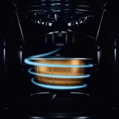 カプセルを回転させながら遠心力を使ってお湯を注入し、 カプセル内の挽き豆全体にお湯を行き渡らせます。