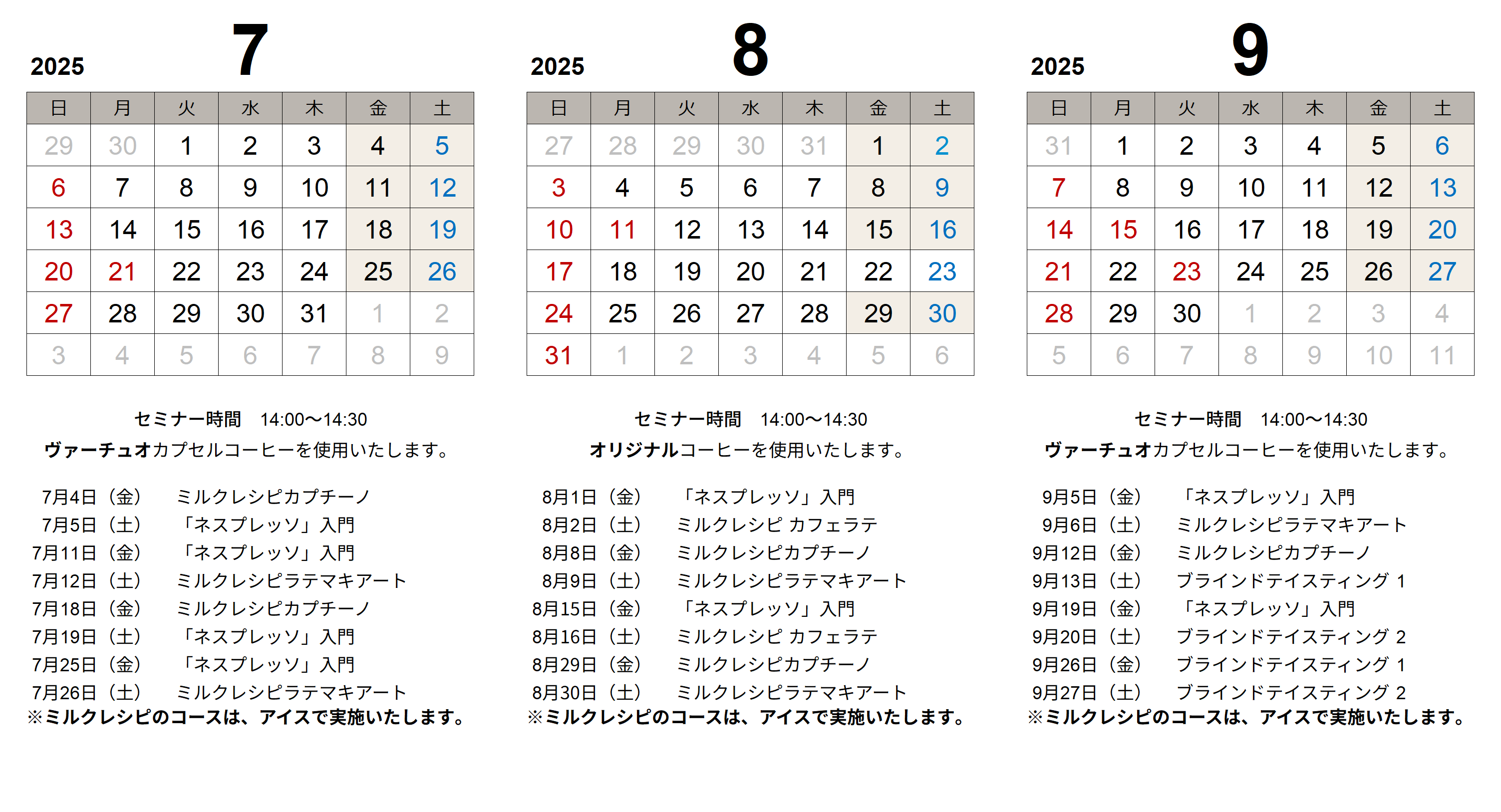 - ※空席のお問い合わせは、ネスプレッソブティック 日本橋髙島屋S.C.店までお電話にてお願いいたします。