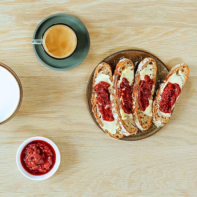 det minst lika viktigt att hitta ett kaffe som passar till. I det här fallet innebär det att servera en hemmagjord bärsylt, ekologiskt smör och gröt tillsammans med en Bukeela ka Ethiopia, en av våra 23 olika Grands Crus kaffeblandningar. Den här utsökt fräscha och blommiga Pure Origin Lungon avslöjar oväntat vilda noter av mysk och trä. En kombination som framhäver smakerna.