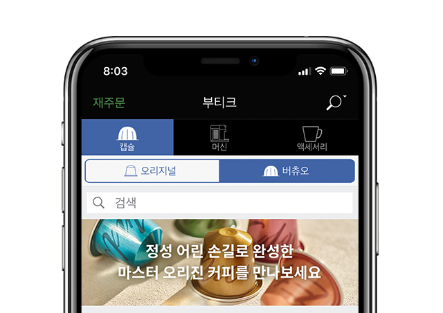 네스프레소 모바일 부티크에서 몇 번의 터치로 커피, 커피머신과 다양한 종류의 액세서리를 만나보세요.
