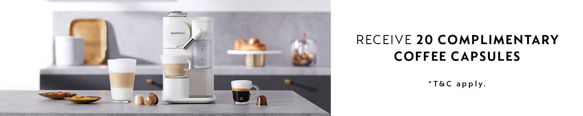 By filling out this form and, registering your machine, you will be entitled to 20 free Nespresso capsules (2 sleeves) with a minimum purchase of 3 sleeves or more. Also, by registering your machine purchase, you will be activating your customer account that will allow you to access future benefits and activate your 2 year Warranty on your Nespresso Machine.