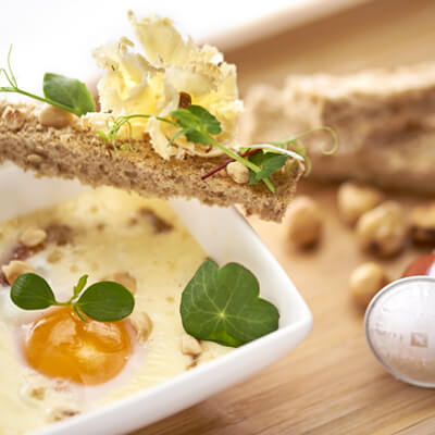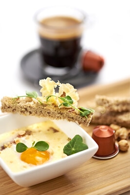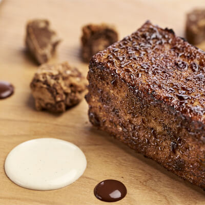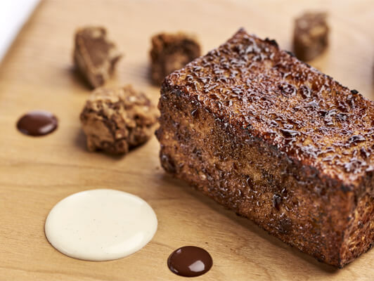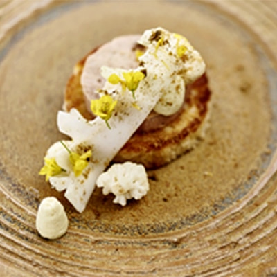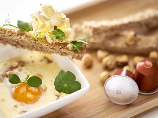 Envivo Lungo, a blend of a distinctive Arabica from India with a Robusta from Mexico, is a coffee with an intense, full body and bitter notes. The toasted notes and pleasant bitterness pair beautifully with the fattiness of the goose liver, the earthiness of the cauliflower and the rich flavour of the fried brioche.