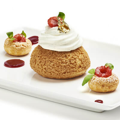 - Place a layer of crispy pastry on each puff and bake at 165 °C for 18 minutes.
