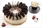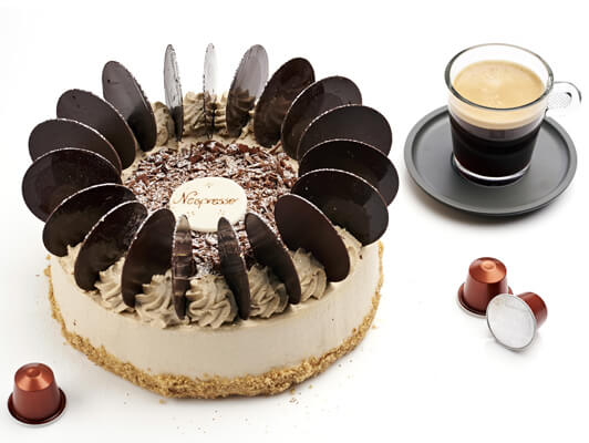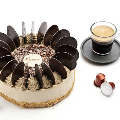 - Décoration : rosaces de crème fraîche à l’extrait de café et décors en chocolat.