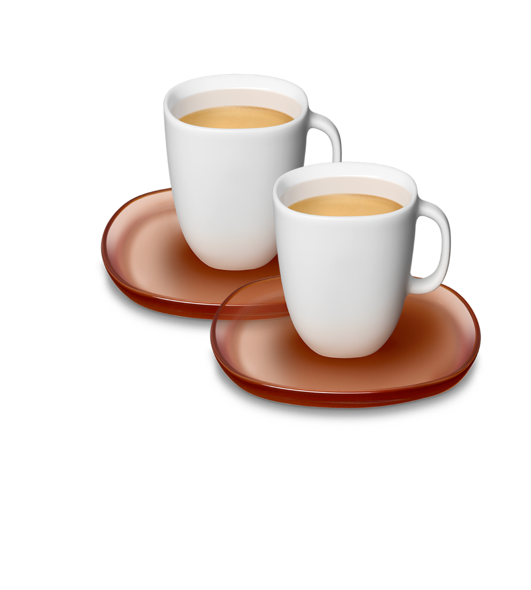 - Set of two cappuccino cups in white matt porcelain and two saucers in translucent ochre red (270 ml) .