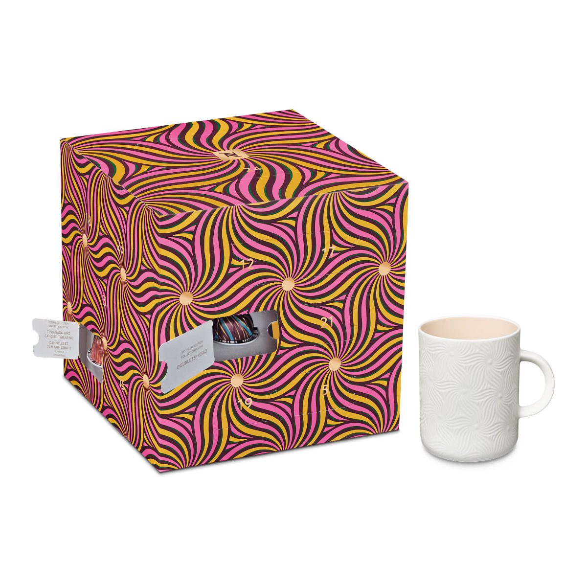 Savourez le plaisir de la découverte, une porte après l'autre. Notre calendrier de l'Avent éclatant vous offre 24 moments café inoubliables, chacun débordant de couleurs et de surprises. Tournez une fleur du motif pour révéler des capsules Vertuo sélectionnées et nos trois nouveaux cafés festifs exclusifs. Derrière la dernière porte : un magnifique cadeau.