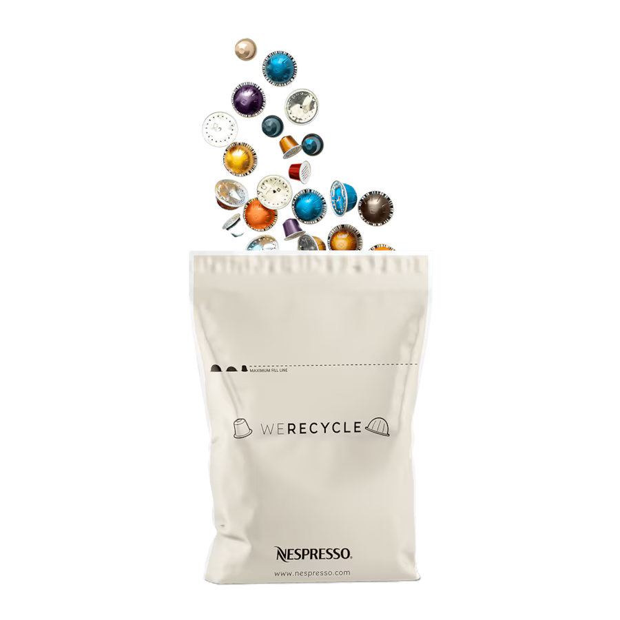Chez Nespresso, nous nous engageons à donner une seconde vie à vos capsules usagées.et Chaque sac peut contenir jusqu’à 200 capsules OriginalLine ou 100 capsules VertuoLine.