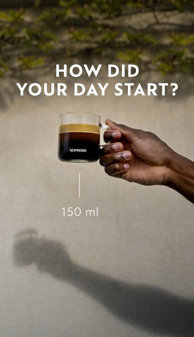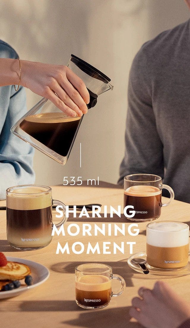 - l’équivalent de 3 à 4 tasses de café Nespresso Original par jour (de 1 à 4 tasses pour les cafés Vertuo).