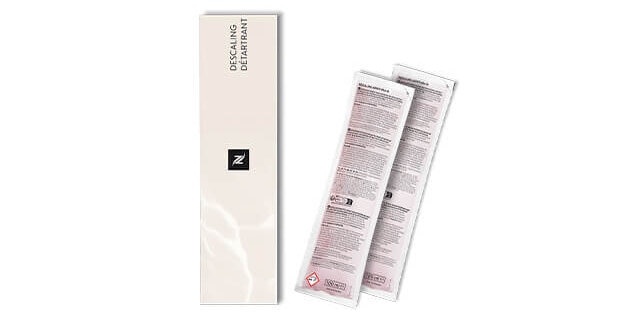 Set of 2 descaling kits for Inissia, Pixie, U, Maestria, Gran Maestria, Lattissima, CitiZ, Essenza, Cube, Concept, Expert, Prodigio, Saeco, Siemens, Classic line machines. The descaling agent gently eliminates the lime scale that builds up in your machine over time to ensure that your tasting experience is as perfect as the first day. For complete information on descaling please refer to the user manual of your machine or the descaling information by visiting the Nespresso website www.nespresso.com/descaling