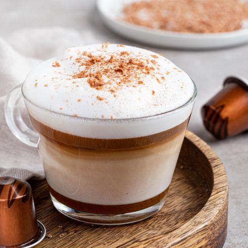 - GARNISH WITH GRATED NESPRESSO DARK CHOCOLATE AND COCOA POWDER.