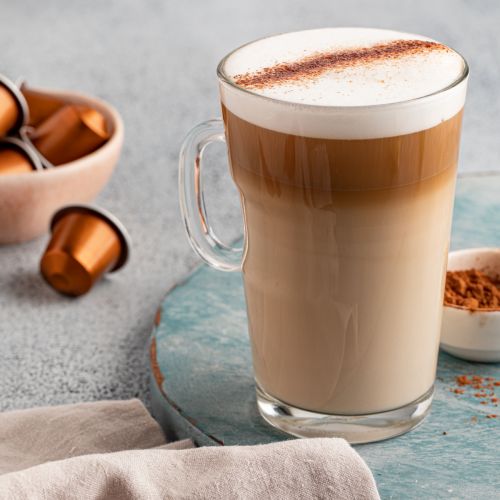 PREPARATION- PREPARE THE TOFFEE NUT SYRUP WITH THE COLD MILK INTO THE NESPRESSO AEROCCINO OR THE NESPRESSO BARISTA DEVICE. CLOSE THE LID, SELECT THE «LATTE MACCHIATO» RECIPE ON THE DEVICE AND PRESS THE START BUTTON.