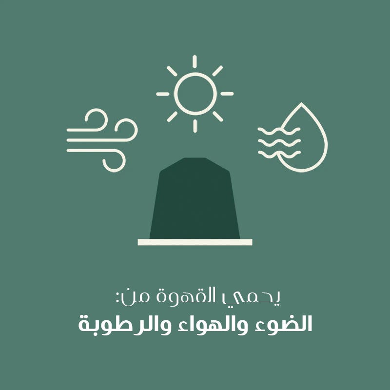 تستخدم نسبريسو الألمنيوم لصناعة الكبسولات لأنه يحافظ على جودة القهوة ولأنه قابل دائماً لإعادة التدوير. كما يتميز الألمنيوم بالعديد من الفوائد الوظيفية والبيئية التي تجعله خيارا ممتازاً لكبسولاتنا.