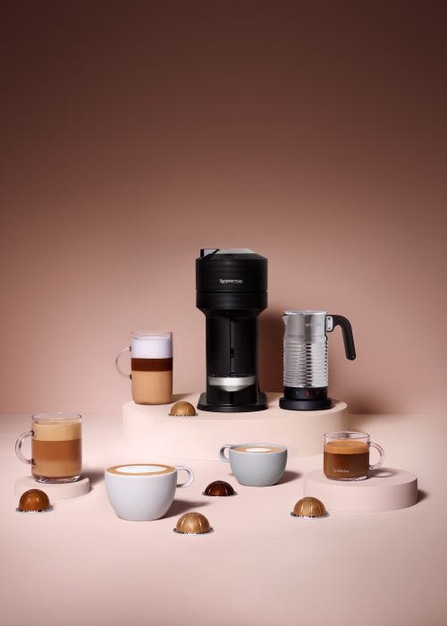 Vertuo Next هو جهاز متعدد الاستخدامات وأنيق. ببساطة، مع مجموعة كبيرة من القهوة في أحجام مختلفة من الكؤوس، فهي مثالية لجميع تفضيلات الفريق.
