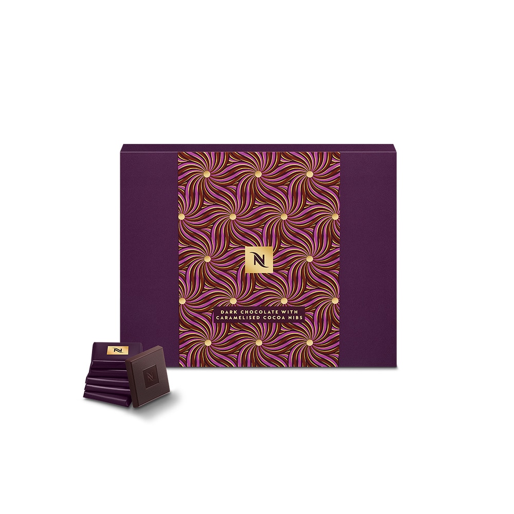 Experience the harmonious and elegant taste of our dark chocolate, crafted with 75% cocoa and enhanced by crunchy cocoa nibs.