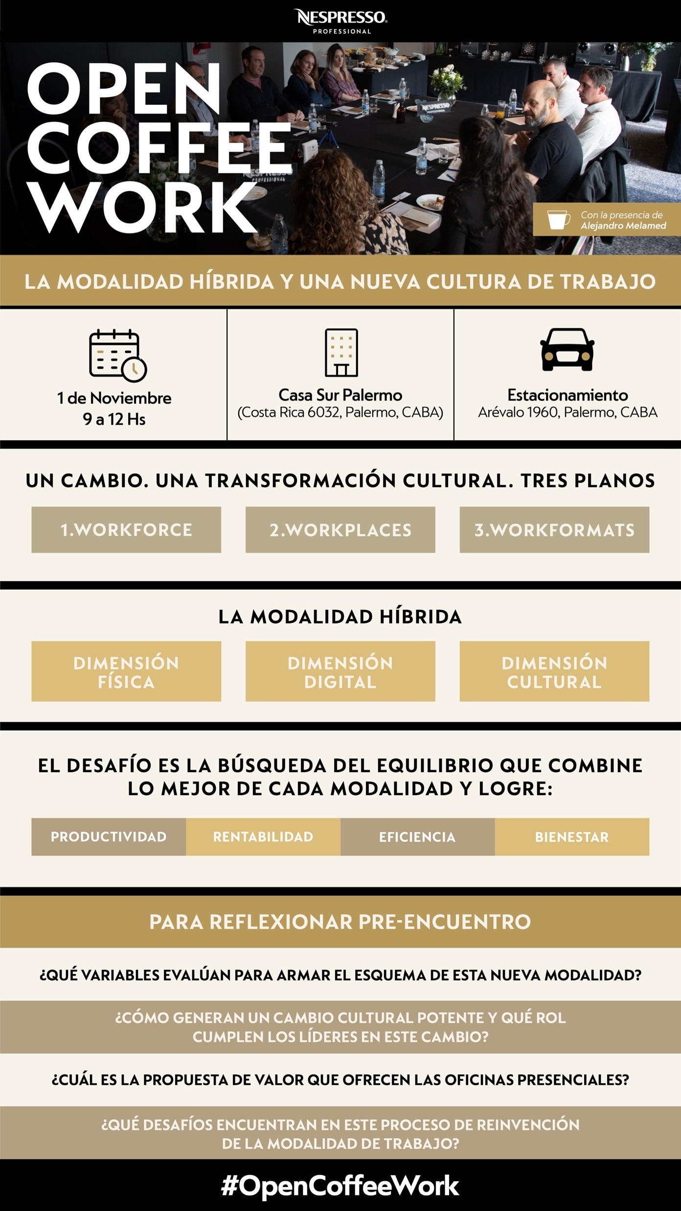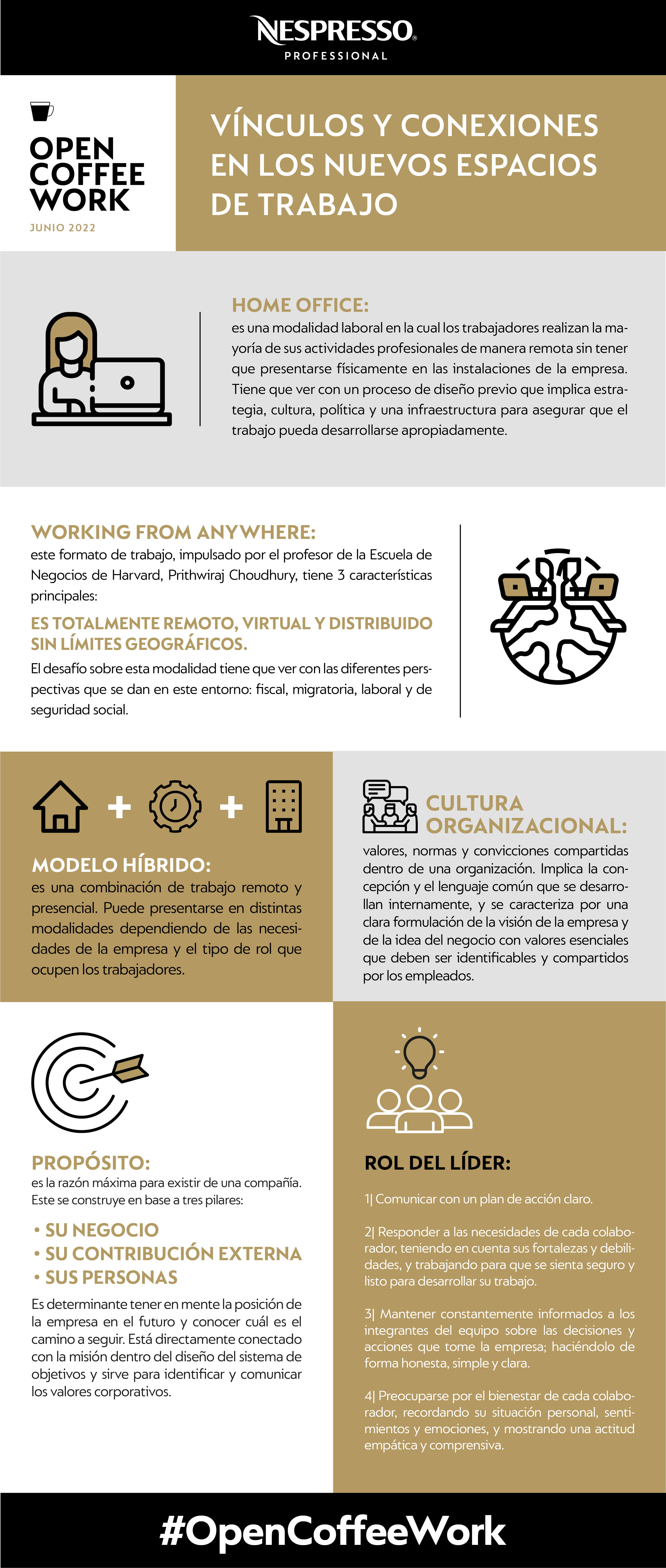 Desde Nespresso Professional impulsamos un ciclo de encuentros de cocreación entre líderes de Recursos Humanos, en un espacio de intercambio y reflexión sobre el futuro del trabajo. Junto con Alejandro Melamed, ambassador de Open Coffee Work, abordamos una variedad de temáticas respecto a las nuevas tendencias de trabajo en las empresas.