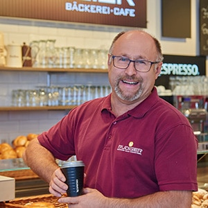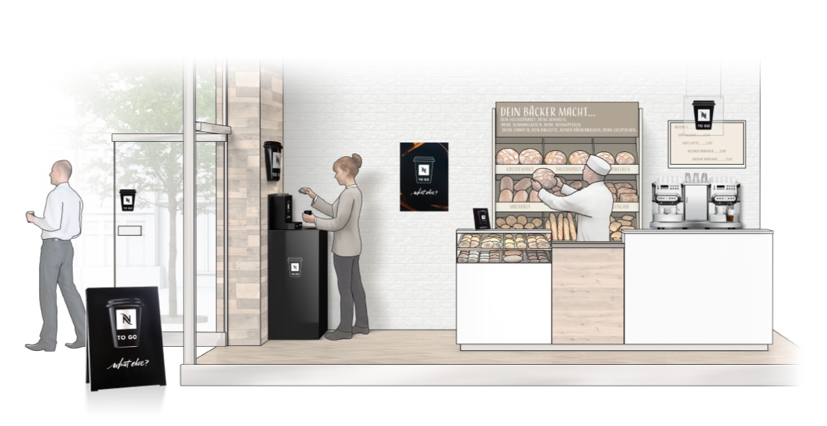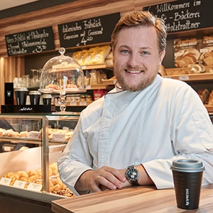 Max Stoll, Bäckermeister„Für uns ist Nespresso TO GO eine sehr effiziente und qualitativ hochwertige Lösung. Der Mitarbeiter hinter der Theke kann sich darauf konzentrieren, Kunden zu bedienen, während Kaffee in perfekter Qualität praktisch von selbst innerhalb kürzester Zeit zubereitet wird.“