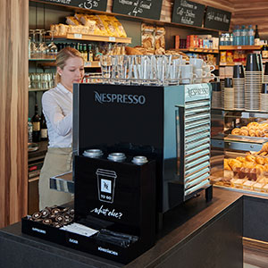 Wie lange dauert eine Barista-Ausbildung? Bei Nespresso ganze 5 Minuten. Mit Nespresso haben Sie keinen Schulungsaufwand und Ihr Mitarbeiter kann sich auf das konzentrieren, wofür Sie ihn eingestellt haben: Auf das Verkaufen Ihrer Produkte und Dienstleistungen.