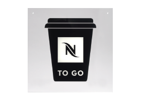 Ein stabiler A-Aufsteller, den Sie vor Ihrem Geschäft aufstellen können. Der besondere Eyecatcher: Ein integrierter 3D-Becher. Auf der Rückseite haben Sie die Möglichkeit, Ihr individuelles NESPRESSO TO GO Angebot im Kreide-Look mit einem speziellen Edding-Stift einzufügen
