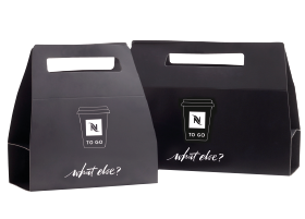 In zwei verschiedenen Größen mit Zwischenboden zum standfesten Transport von 2 bzw. 3 NESPRESSO TO GO Cups. Anlieferung flach zusammengefaltet. Das Tray kann mit einem Handgriff entfaltet und bestückt werden.