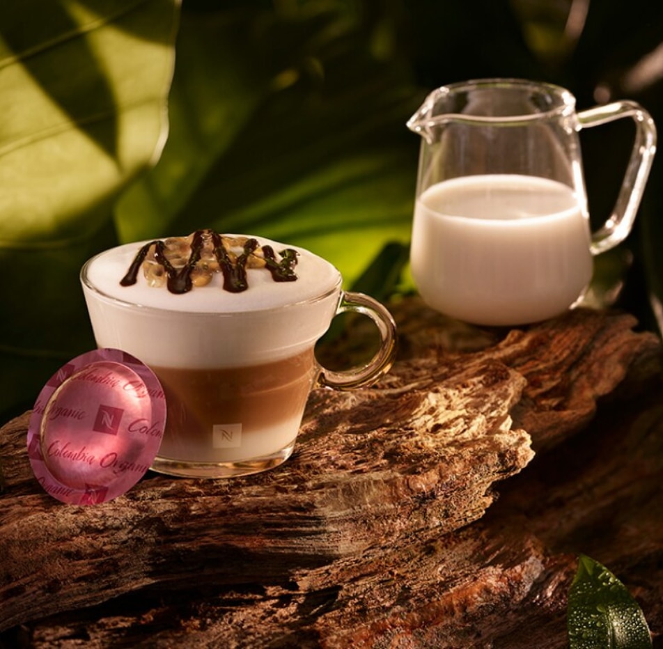 - Put the cup under the Nespresso Momento Coffee & Milk or Aguila machine and put the Colombia Organic into the machine.