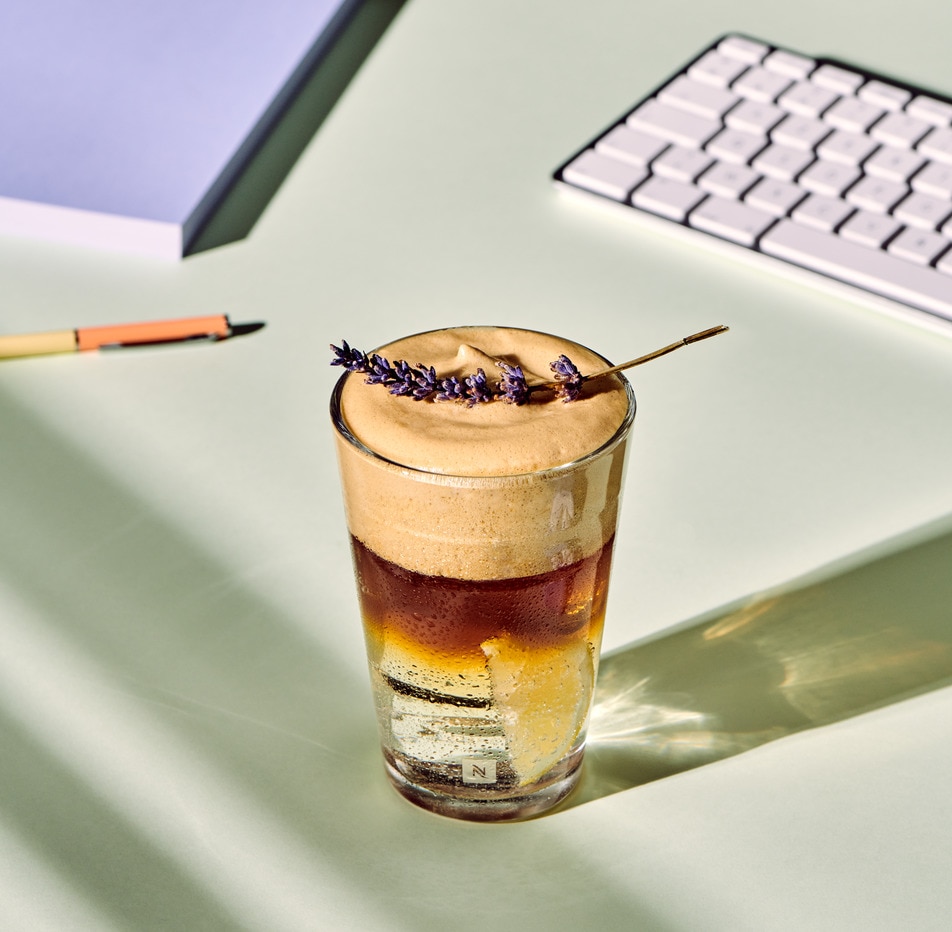- Brew a capsule over 1 tsp of fresh or dried lavender, in a VIEW Recipe glass. Let it infuse for 2 minutes before straining it into a shaker and adding one ice cube. Seal the shaker and shake vigorously.