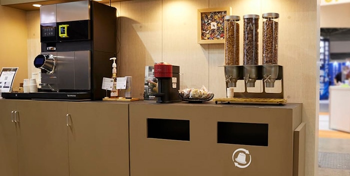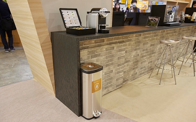 社内のコミュニケーション活性化や社員エンゲージメント向上に貢献する様々なオフィスコーヒーの活用シーンのご提案、いま世界規模で注目を集めるカーボン・ニュートラルや使用済みカプセルのリサイクルプログラムの取り組みなど、会場の様子をご紹介します。