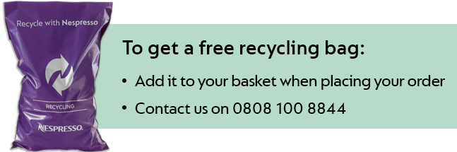If you forgot to add a recycling bag to your order, please contact one of our coffee specialists at 0808 100 8844.