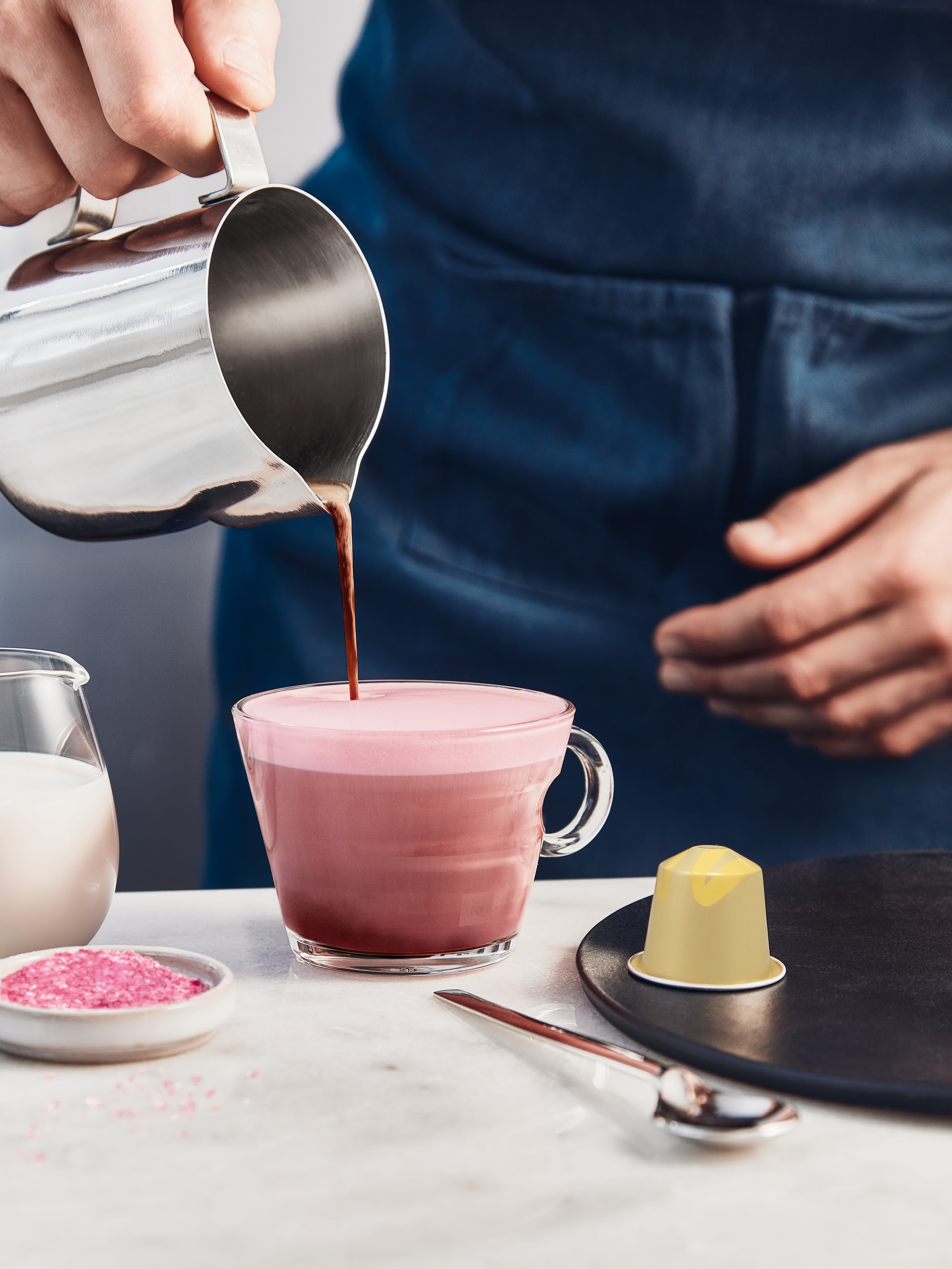DescubríColocá 120ml de leche en el dispositivo Barista y agregá 1 cucharada (15gr) de yogurt de frutilla.