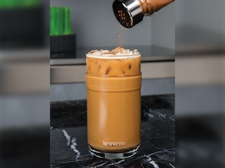 1 cápsula de Envivo Lungo ou 2 de Volluto 1 colher de chai 1/4 de colher de canela em pó Leite de arroz