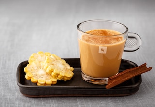 1 cápsula de Roma (40ml) 150ml de suco de milho 30ml de rum para a versão alcoólica Canela Gelo