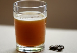 Em um recipiente, coloque o mel, extraia o café sobre ele, mexa bem e reserve;