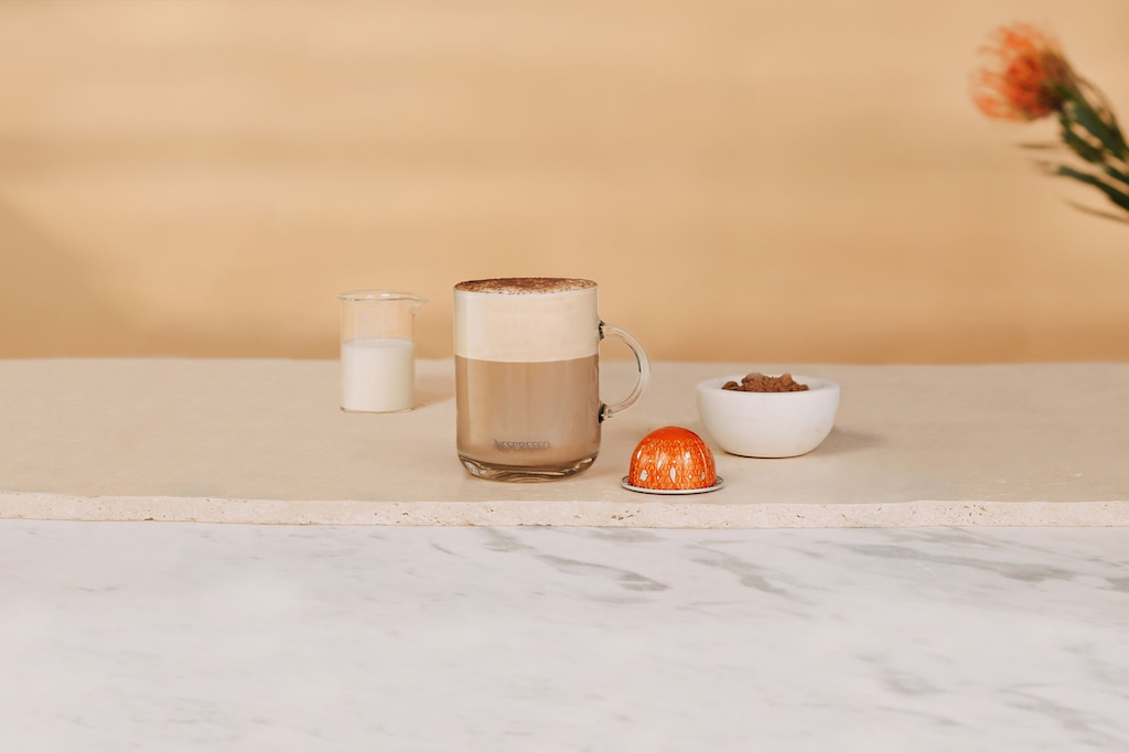 Descubra o Peppermint Pinwheel Viennois, a receita festiva e indulgente perfeita para esta época. Transforme a nossa cápsula de café Peppermint Pinwheel em uma bebida aveludada e refrescante: o café com notas de menta e especiarias se une a uma generosa e fria camada de espuma de leite. O toque final de menta fresca e chocolate amargo garante um sabor irresistível e uma experiência sazonal memorável.