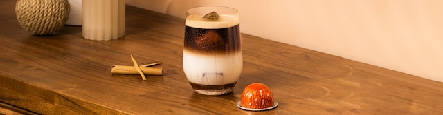 Brew 1 Vertuo capsule of Pumpkin Spice Cake (230 ml) in a shaker. Add 6 ices cubes and vigorously shake it for 10 seconds.