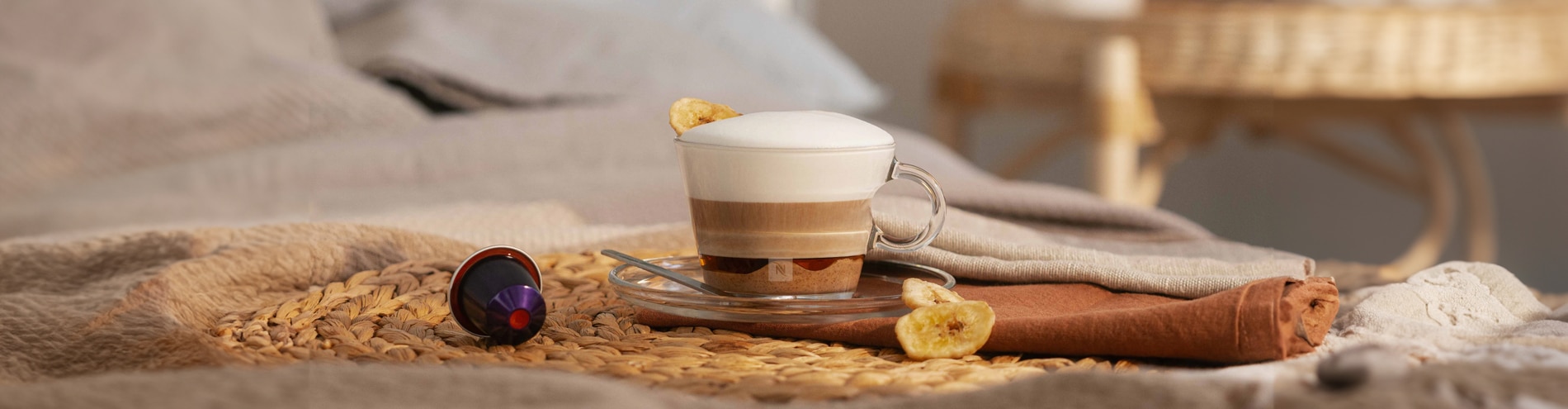Pour the foam on top of the coffee and garnish with a slice of banana