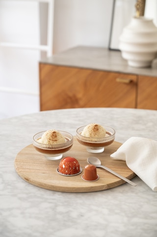 In a Nespresso Affogato bowl, serve one generous ice cream scoop of the ice cream you like. We recommended a Vanilla ice cream or, to prolong the pleasure, a caramel ice cream.
