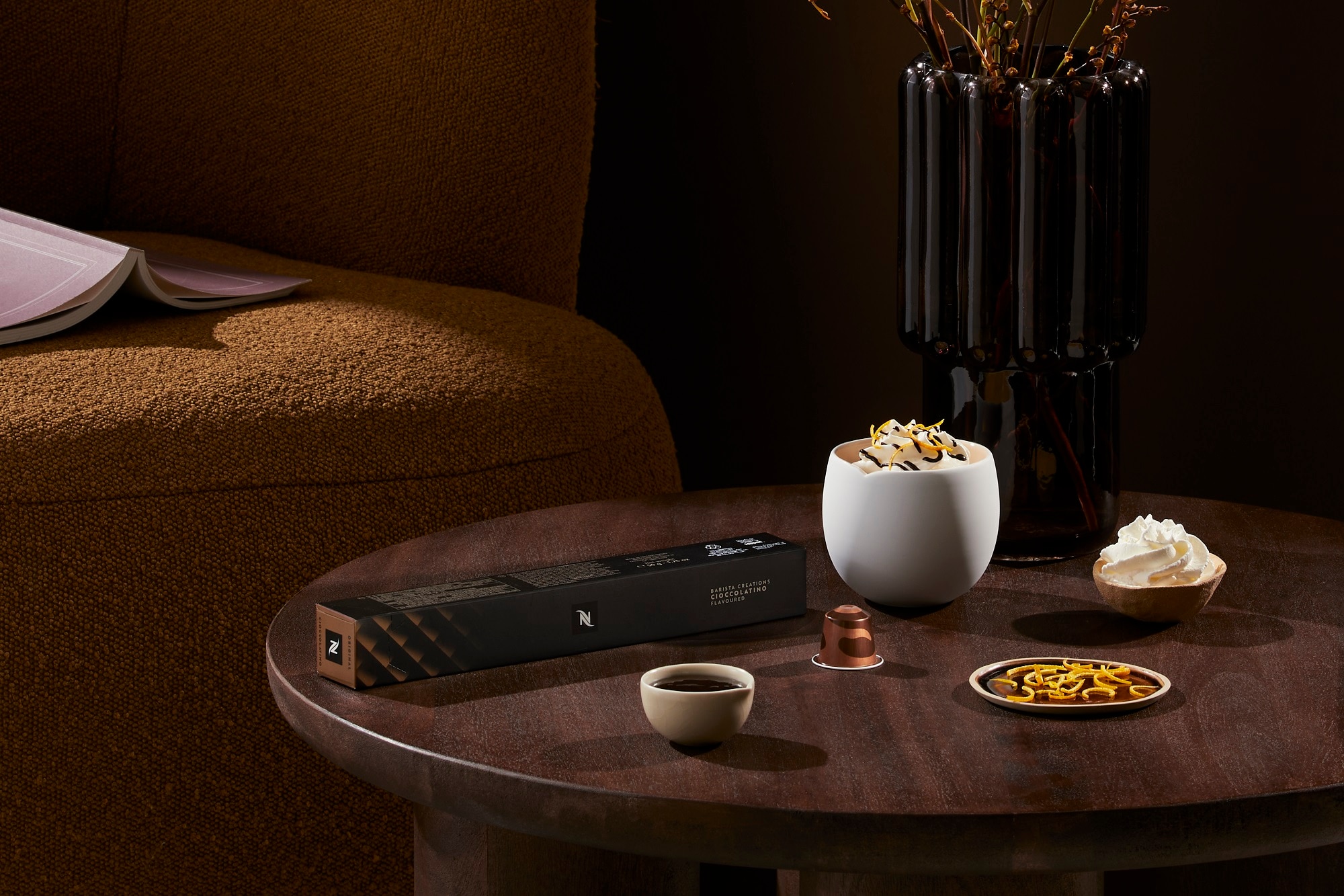 Brew a Barista Creations Flavoured Cioccolatino directly into the Origin Gran Lungo Cup.