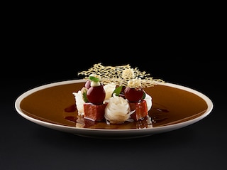 Végül a stefániák tetejére helyezzük a kávézselében kimártott kacsamájat.