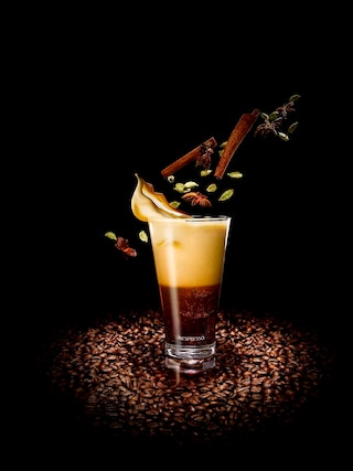 Pour the flavored coffee and three ice cubes into a shaker and shake well.