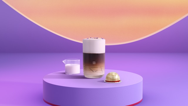 In a Large Recipe glass put 5 Nespresso Ice Cubes, add 10ml of Sugar Syrup and pour 60ml of Milk 1.5%.