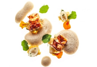 Whisk the coffee bisque into a mousse and pour onto the vegetables, dressing the lobster