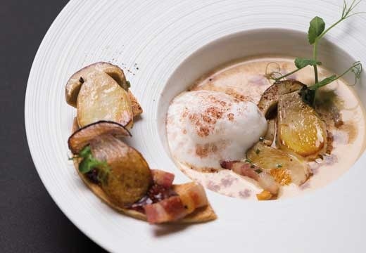 Presentationfrozen blackcurrant berries2 candied chestnuts Spread a thin layer of blackcurrant jam on top of the dough, then fill with whipped chestnut ganache