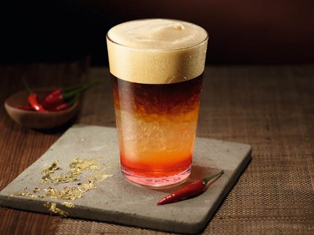 Pour 2 Nespress espressos on top (after having cooled the coffee down with ice cubes) and serve