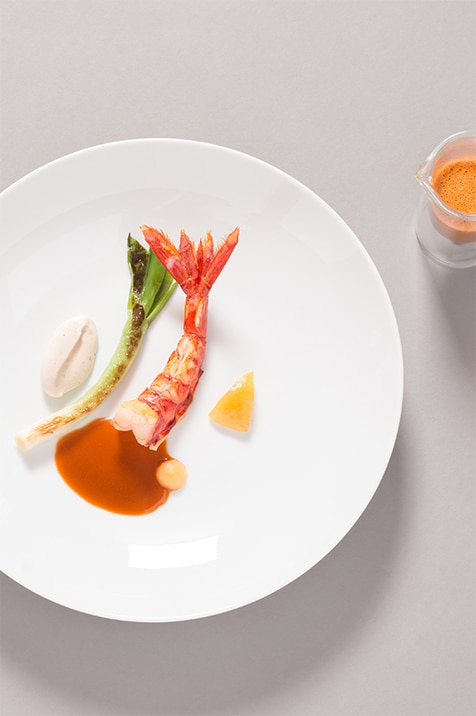 Reduce the cream slowly until a creamy consistency is achieved. Check seasoning and reserve.