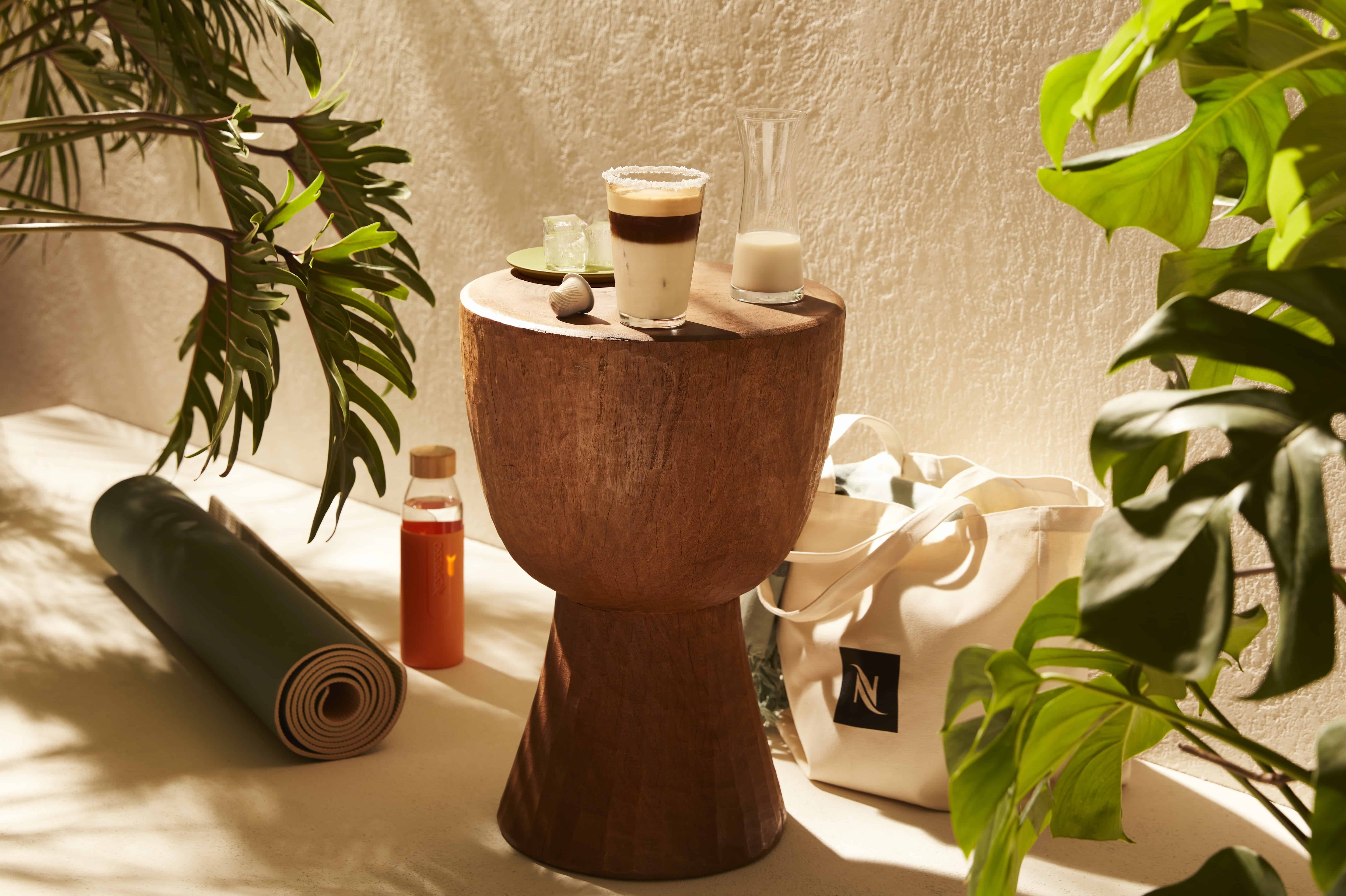 Extrae una cápsula de Espresso Coconut Flavour Over Ice en la jarra de tu Nespresso Barista y añade un cubo de hielo o en tu shaker añade el café, el hielo y agita vigorosamente.