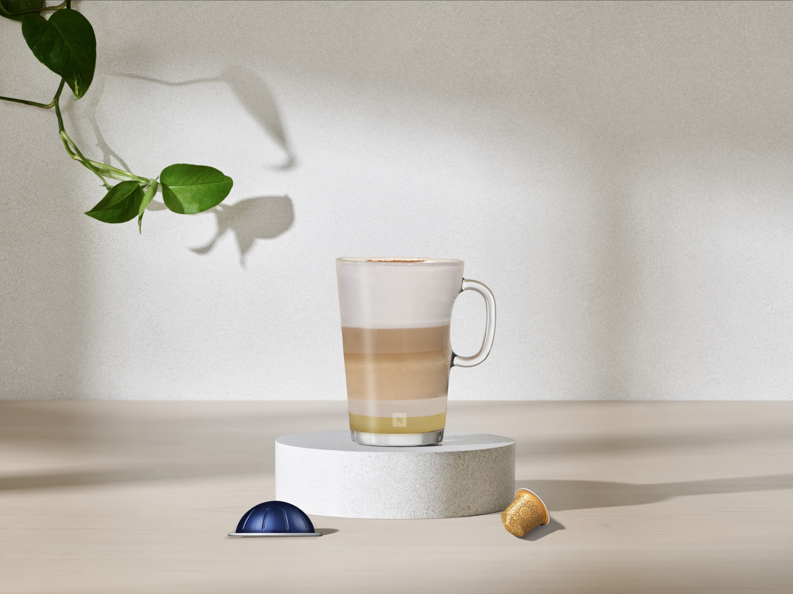 Agrega lentamente la leche en tu taza y extrae tu café sobre los ingredientes.
