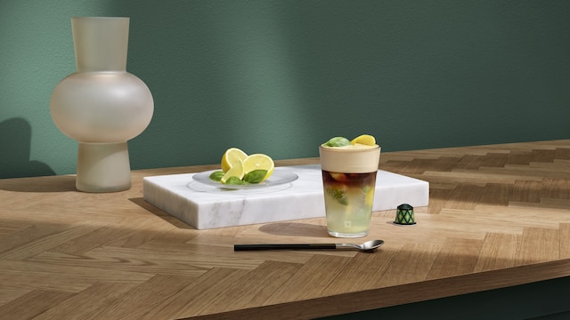 Extrae 40 ml de tu café Ispirazione Italiana Milano Edición Limitada en tu máquina Barista y añade 1 cubo de hielo (30 g). Cierre la tapa, selecciona la receta "Iced Nitro" y pulsa el botón de inicio.