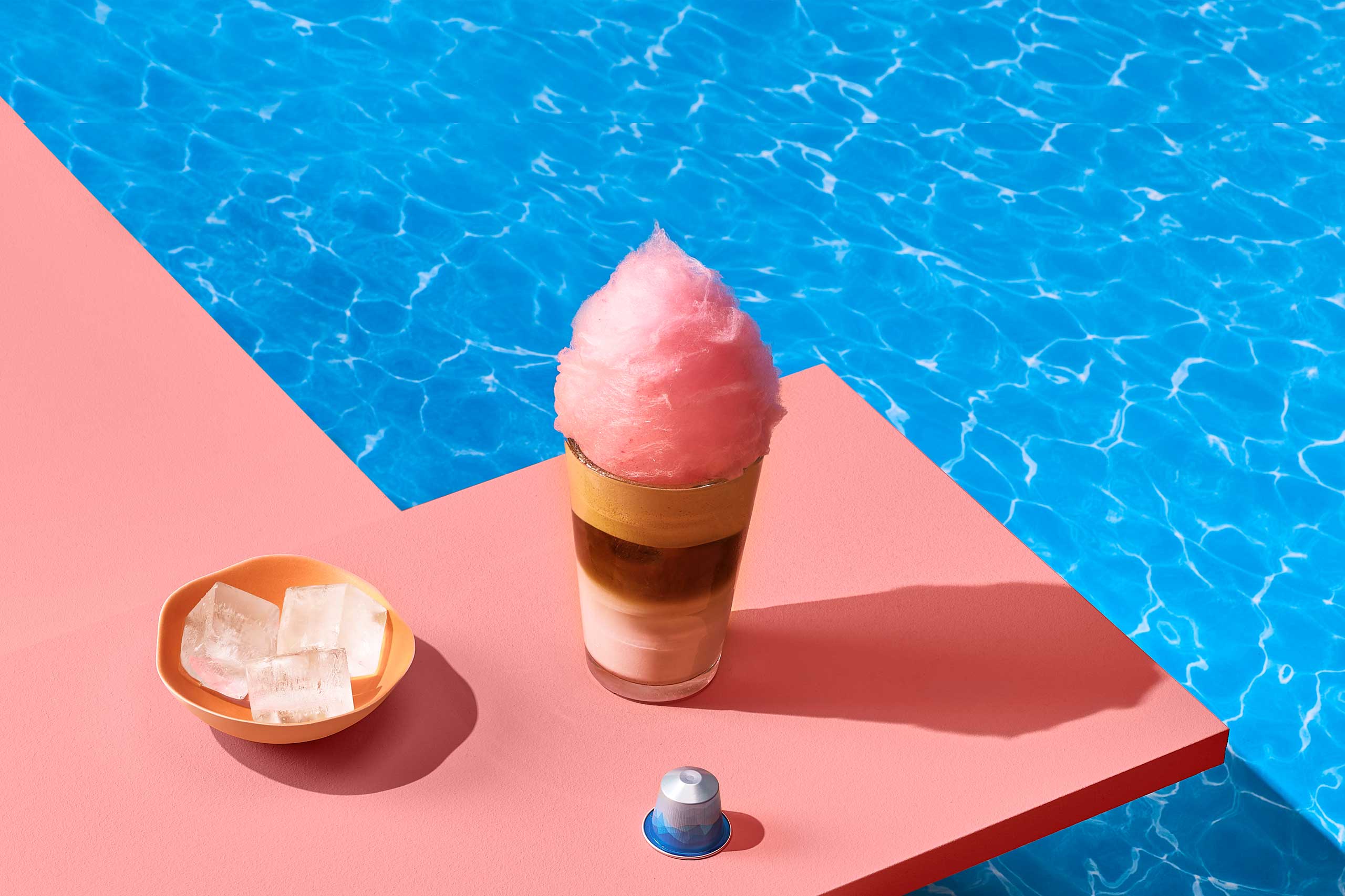 A summer coffee drink that tastes like a dream. Like Chiara’s dream.Chiara Ferragniimagined her favorite iced espresso mixed and mingled with a rich coconut flavour. And to turn this coconut delight into a treat for the eyes, Chiara topped it with a touch of cotton candy. A recipe that is bold, sweet and fresh: just like her.