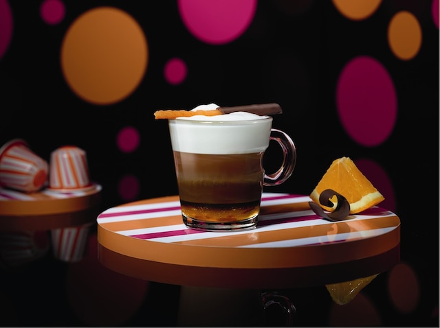 將½ 茶匙香橙果醬置於Espresso玻璃杯中